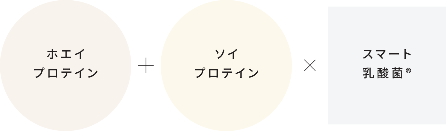 アミノ酸が豊富な“ホエイプロテイン”は筋肉に、イソフラボン豊富な“ソイプロテイン”は女性らしいカラダ作りに。2つのプロテインを掛け合わせることで、より効率的に美ボディへ導きます。